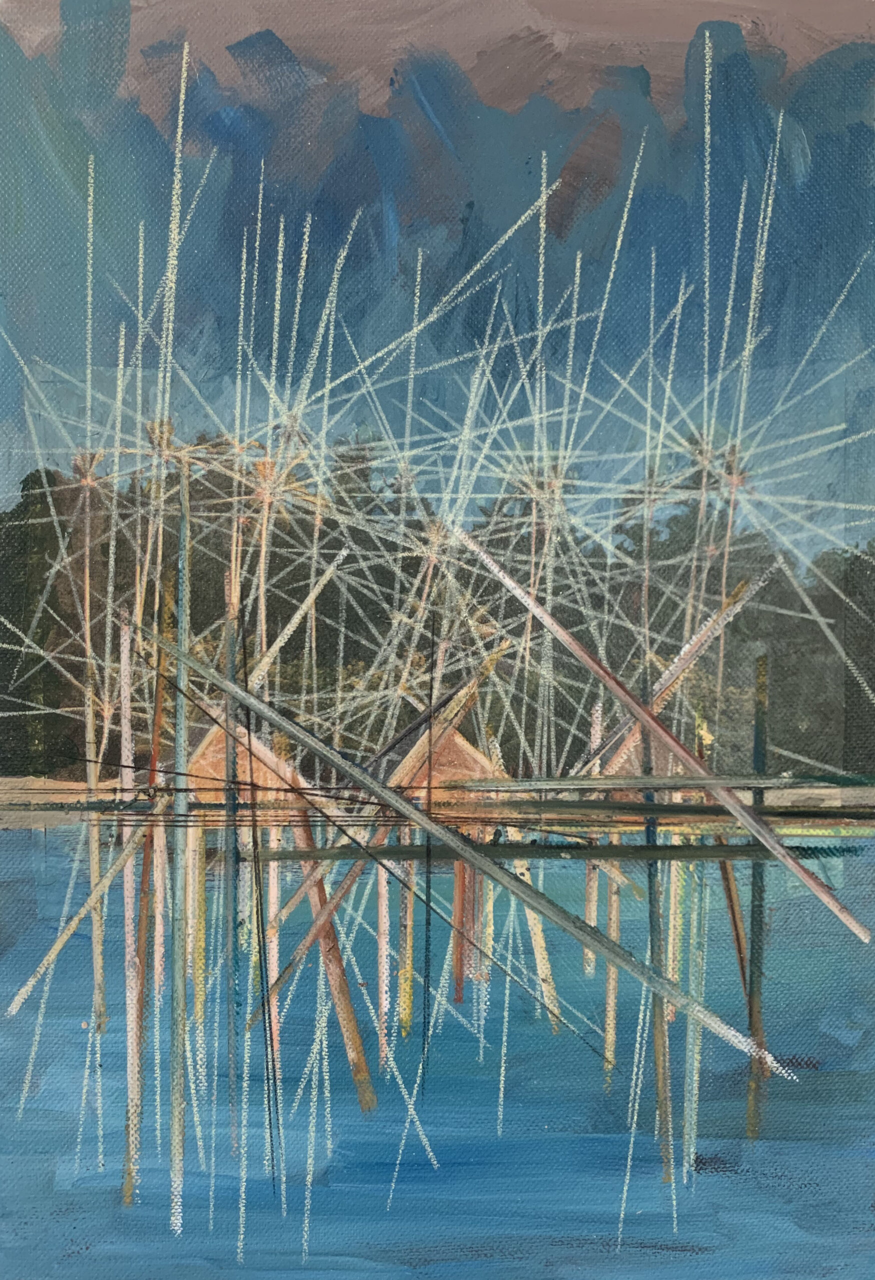10″x14 1/4″ Mixed media collage- acrylic, newspaper, oil pastel on canvas