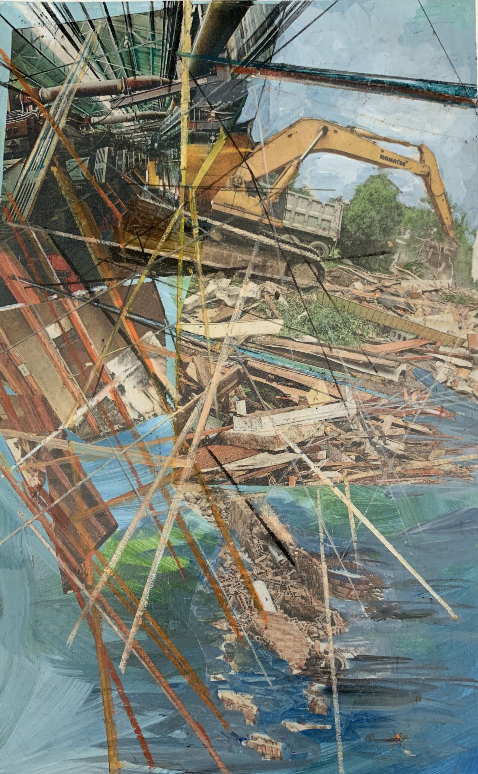 9″x14″ Mixed media collage- acrylic, newspaper, oil pastel, color pencil on Bristol board