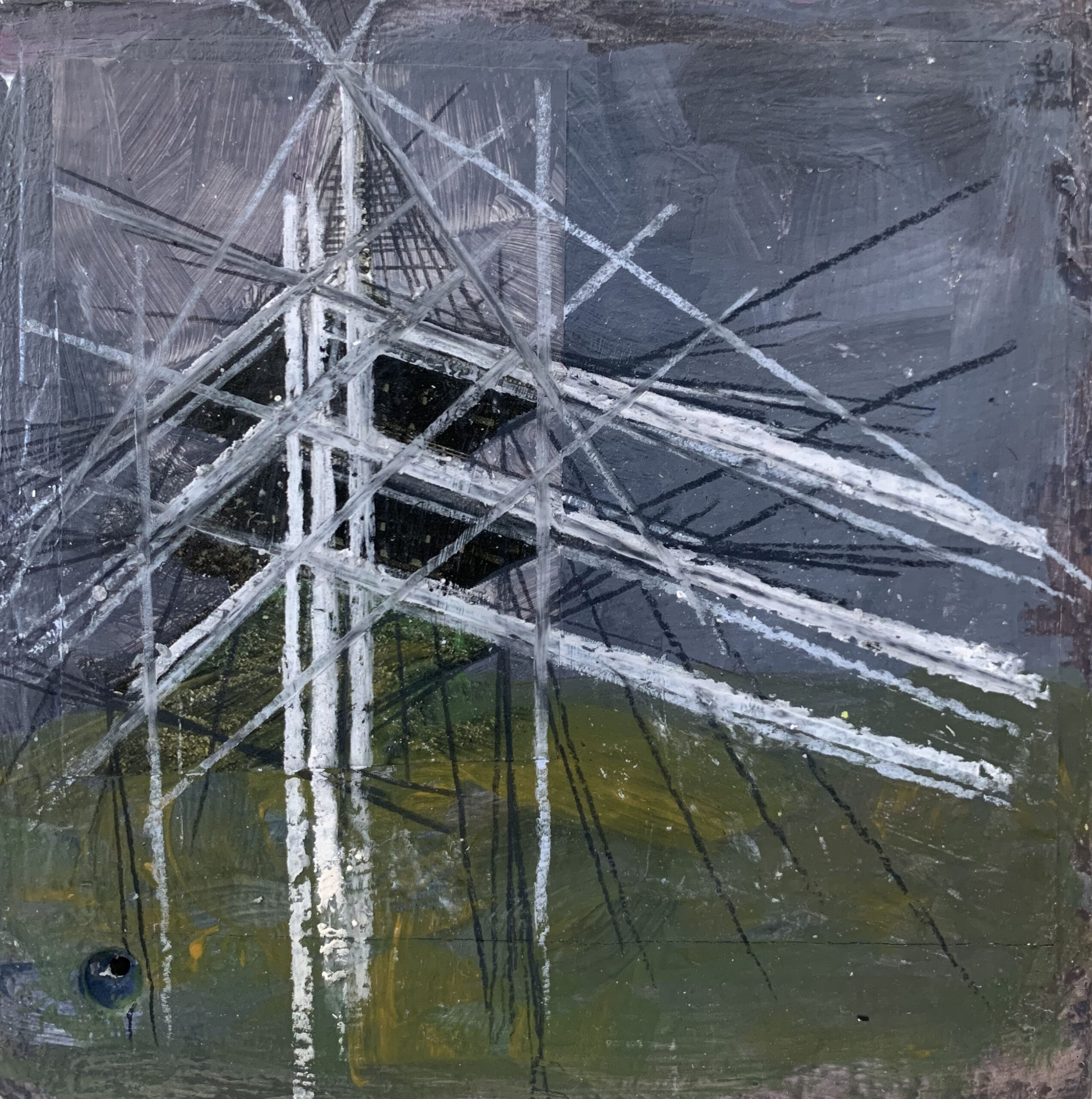 6″x6″ Mixed media collage- acrylic, newspaper, oil pastel on masonite