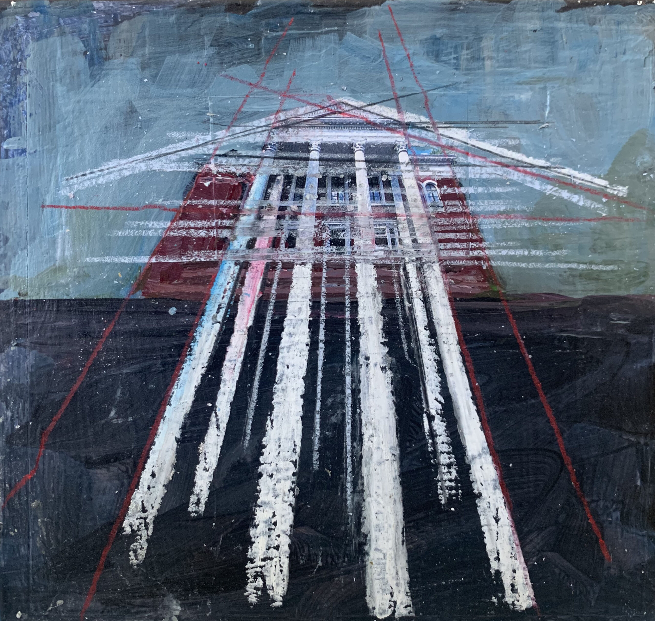 6″x6″ Mixed media collage- acrylic, newspaper, oil pastel on masonite