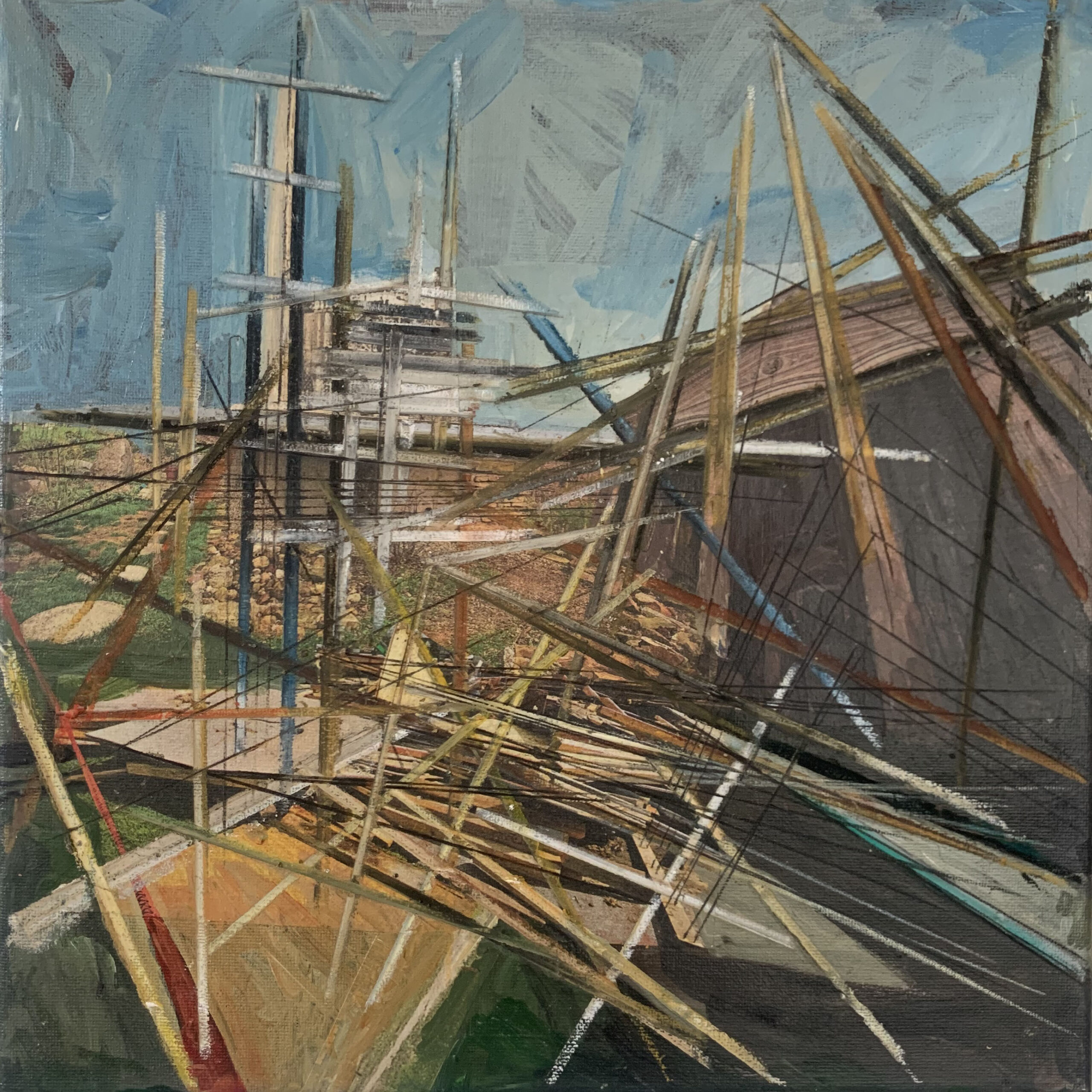 12″x12″ Mixed media collage- acrylic, newspaper, oil pastel on canvas
