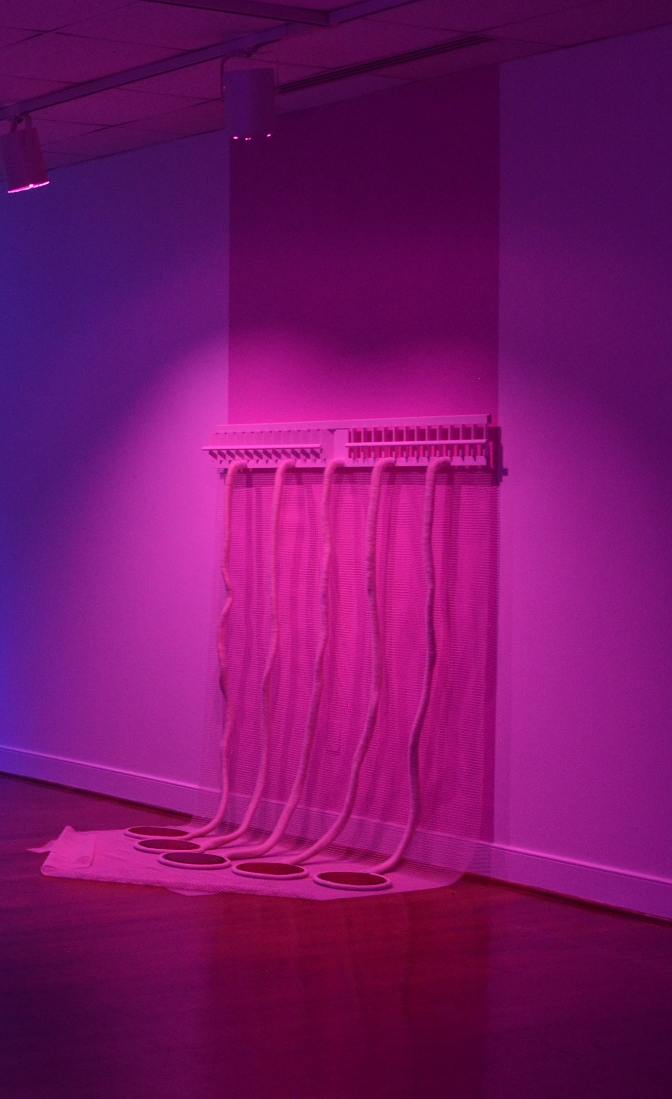 2013-2024 // Shutter, rug pad, neon light, chair leg caps, false teeth, sanded plexi, paint, wood & various fibers